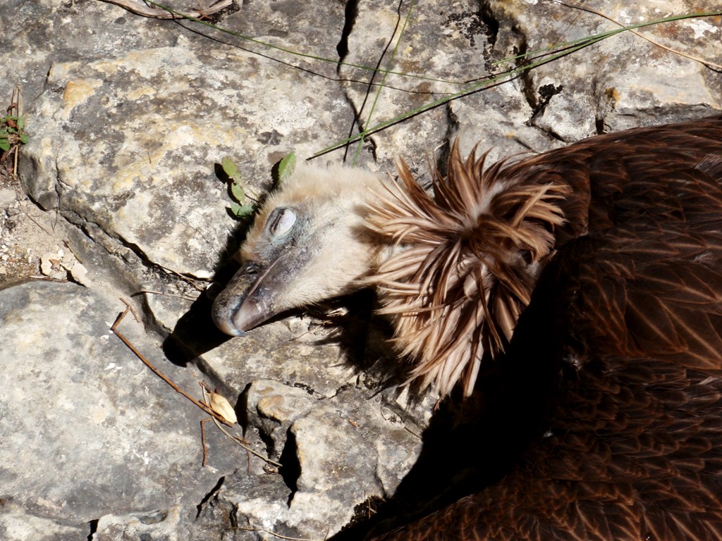 Un Buitre Leonado muerto en la orilla del Río Vero.
