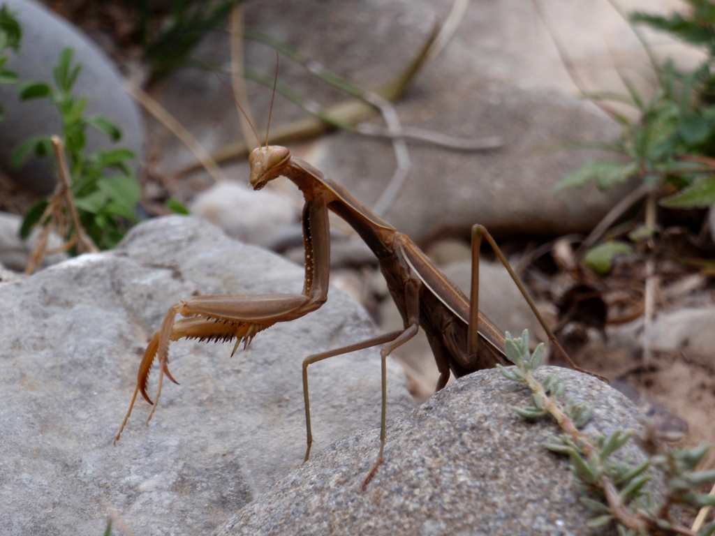 Las mantis adaptan durante su crecimiento el color más parecido al suelo. por eso encontramos marones y verdes. A pesar de su tamaño saben volar.