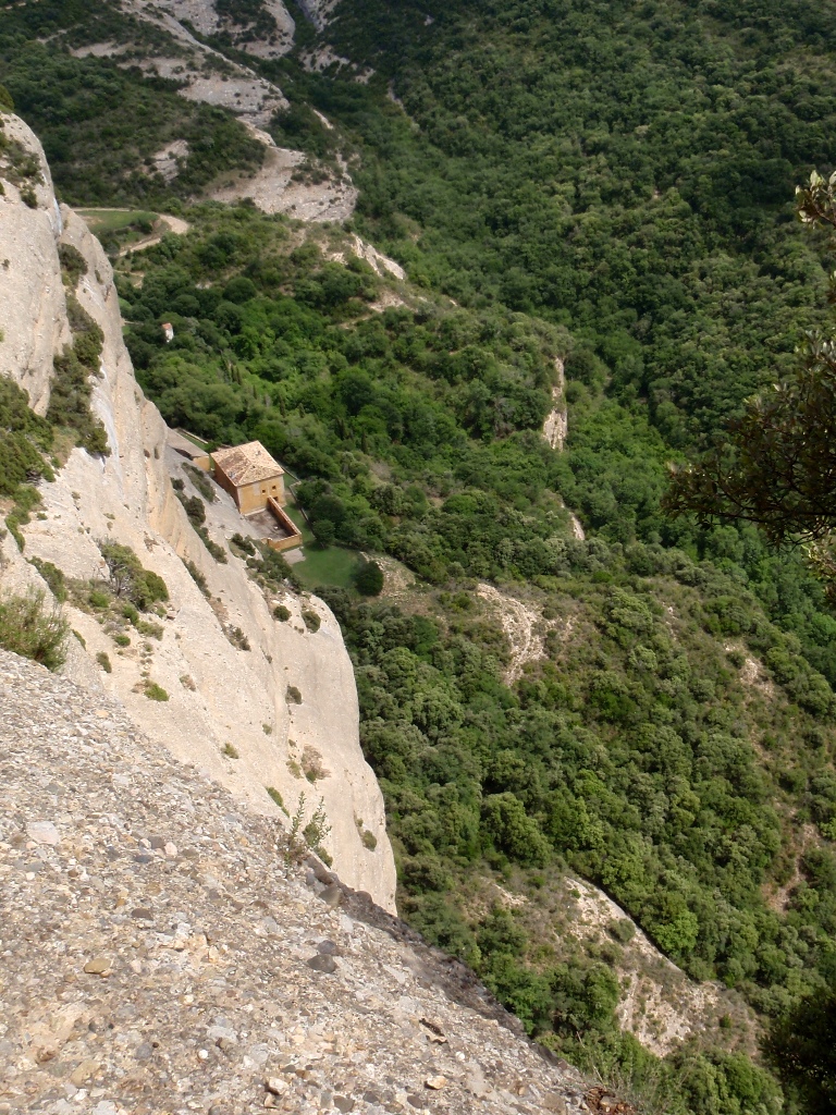 Así se llama este precipicio de más que 350m de verticalidad. A la izquierda se encuentra la ermita y por el medio se tuerce el Río Alcanadre. Cerca del edificio un puente salva la Badina del Caxico (el árbol (muerto) que da el nombre está muy a la vista).