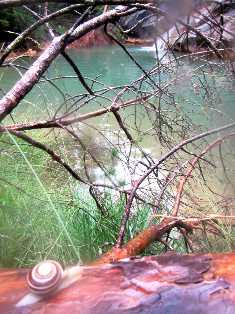 Bajamos por una senda obvia al lecho del río y le remontamos hasta la poza.