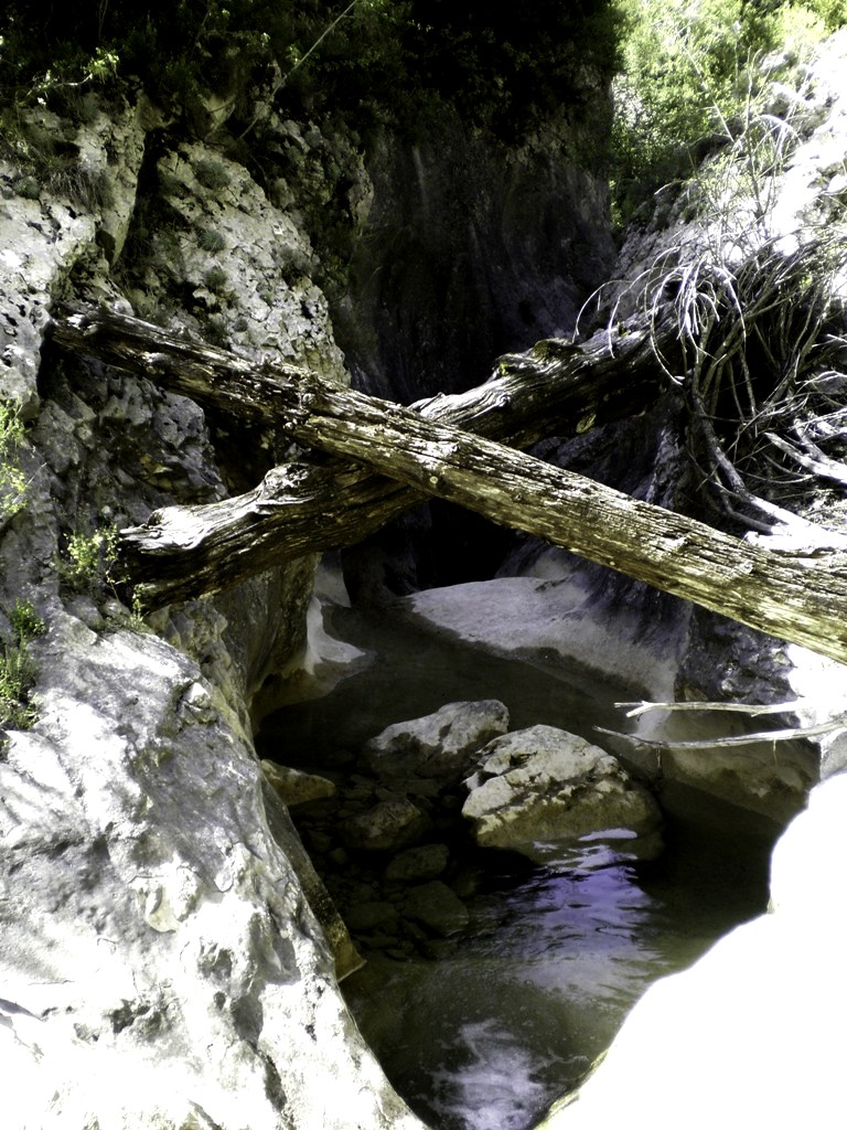Ya preparado para el agua nos dirigimos hacia el extremo derecho de la colina mencionada. Allí, cerca de una pequeña presa, encontraremos un fácil acceso al lecho del río. Avanzamos siguiendo la corriente por el cauce que se va estrechando en seguida.