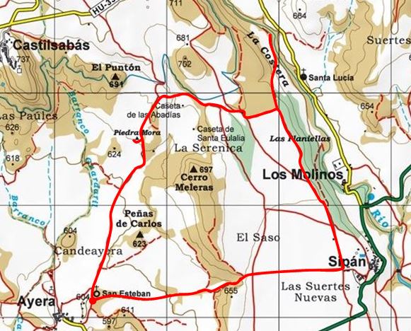 De nuevo en el cruce encima del pueblo tomamos rumbo al oeste para llegar a Ayera. No hay ningún cartel que lo indique, pero el camino es obvio.
