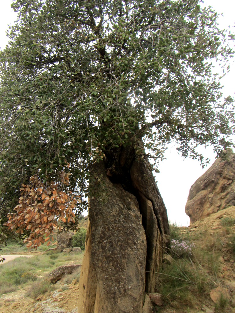 Muy curiosa me parece la carrasca que crece por una grieta en un bloque. Se encuentra a lado del camino de acceso que fue empotrado en el arenisco igual.