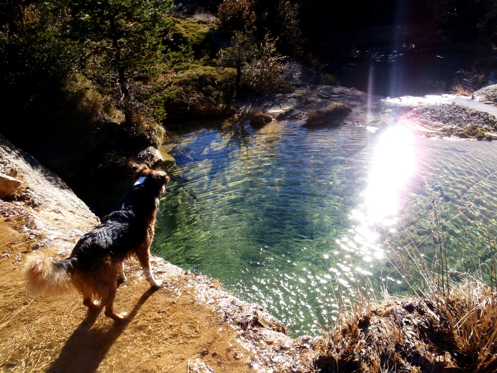 El paisaje es espectacular y el perro disfruta por la presencia de agua. Dos razones para ir lento, con los ojos bien abiertos y atentos. Debemos tomar el siguiente tramo con tranquilidad.