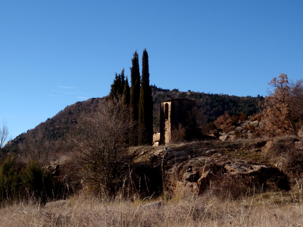 Situada en un claro de la boscosa vertiente derecha del Calcón la ermita parece un poco perdida. Hoy en tiempo lo es, pero antaño fue habitada y rodeada por campos cultivos.