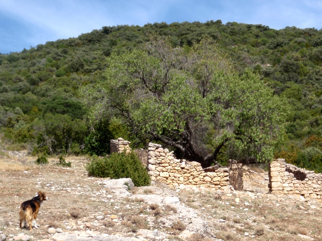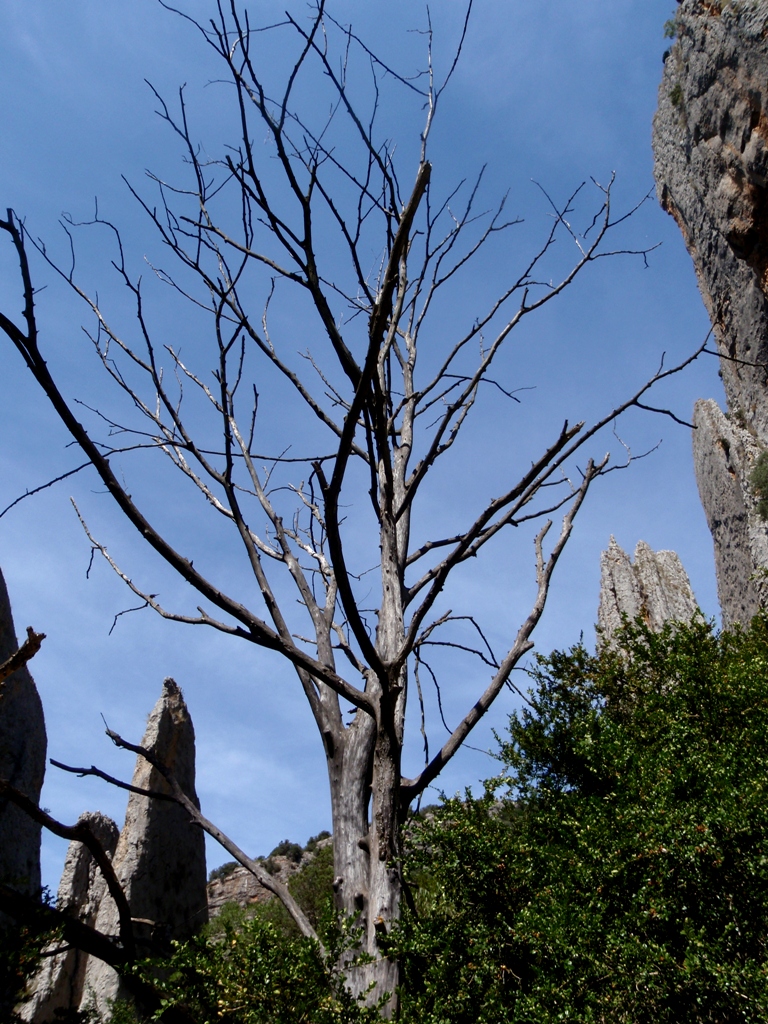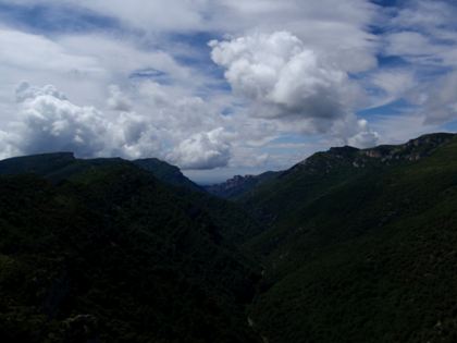 El corral está abandonado e invadido por la vegetación. Un poco más adelante, donde se pierde el camino en una pedrera, hay de nuevo buenas vistas sobre el cañón.