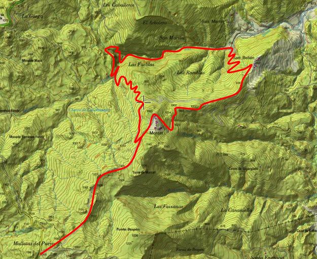 De nuevo en la pista, un poco más delante de la borda se desvía un sendero balizado a mano derecha que gana suavemente altura y nos lleva directamente a nuestro segundo objetivo: el pueblo abandonado de Morcat.