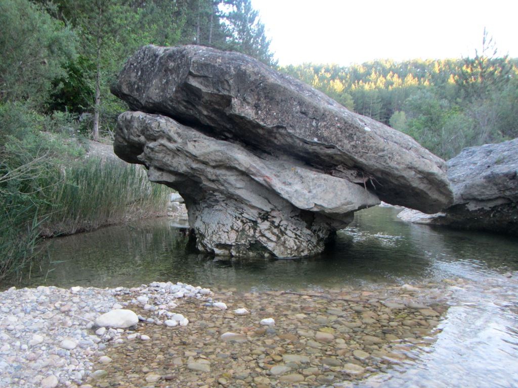 Una vez pasado el Puente Arbex llegamos a una bonita poza con un gran bloque triangular en el centro. En la orilla derecha hay una playa de piedra. Desde allí sale una senda (posible escape) muy empinada que lleva a la carretera cerca del puente Arbex.