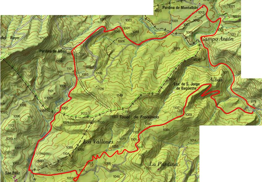 Por los campos al oeste del pueblo se forma la senda que lleva a la Pardina Latorre. Por desgracia, está perdida y cuesta mucho seguirla por aquel terreno seco. La Pardina Latorre destaca con el «esqueleto» del olmo más alto que conozco y merece, sin ninguna duda, una visita, ya que no se sabe cuanto más se mantendrá de pie. Algunas imágenes del olmo se encuentran en el capítulo de fotos: «Árboles«.