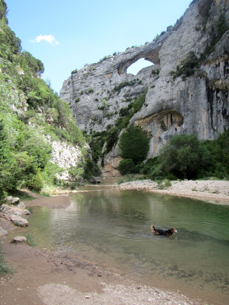 Cruzamos al Río Guarga donde nos parezca mejor y buscamos una senda que se forma en el bosque en la orilla derecha del barranco de la Arredola.
