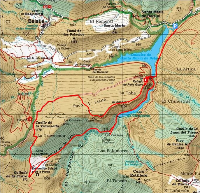 Durante mis paseos de investigación he descubierto una zona muy curiosa cerca del Salto del Barranco de la Aredola – curiosa de cara a la arquitectura popular. Para acoplar esta curiosidad a la ruta podríamos efectuar la marcha desde la Poza de la Aredola al Paso de San Úrbez por la misma loma divisoria de los dos barrancos (Arredola y Lenar).