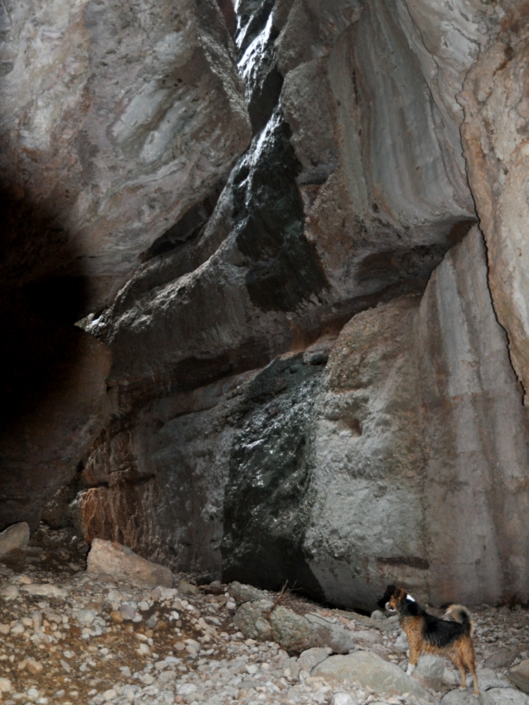 De nuevo en la senda principal continuamos en dirección oeste hasta que llegamos en 15min a una bifurcación. Si tomamos la senda que baja a la izquierda llegaremos en 10min al cauce justo en la desembocadura del Barranco del Puyasieto.